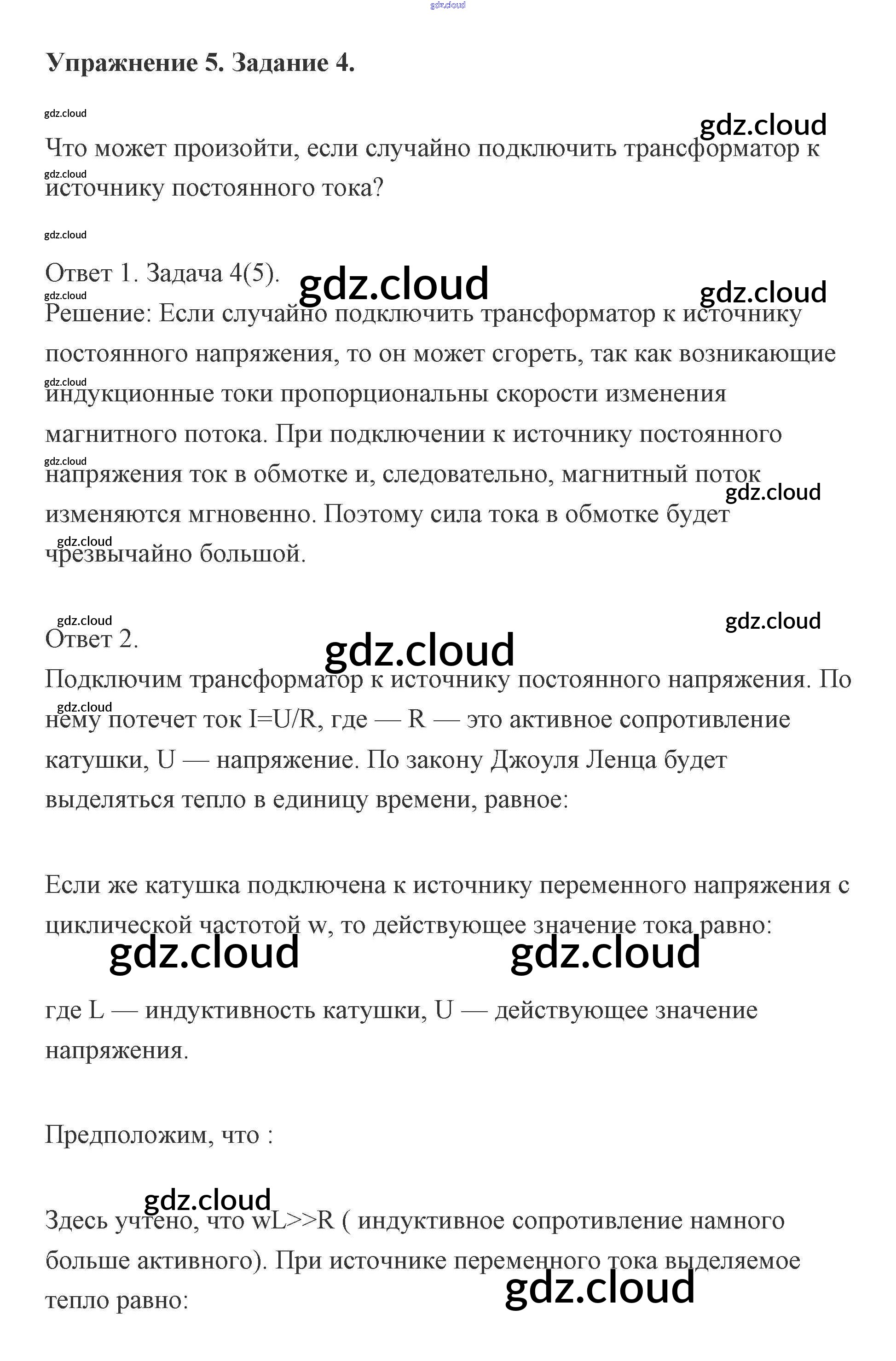 Глава 5. Упражнение 5 (Задания) Ответы к упражнениям по Физике 11 класс Учебник Мякишев Базовый и углубленный уровень Просвещение