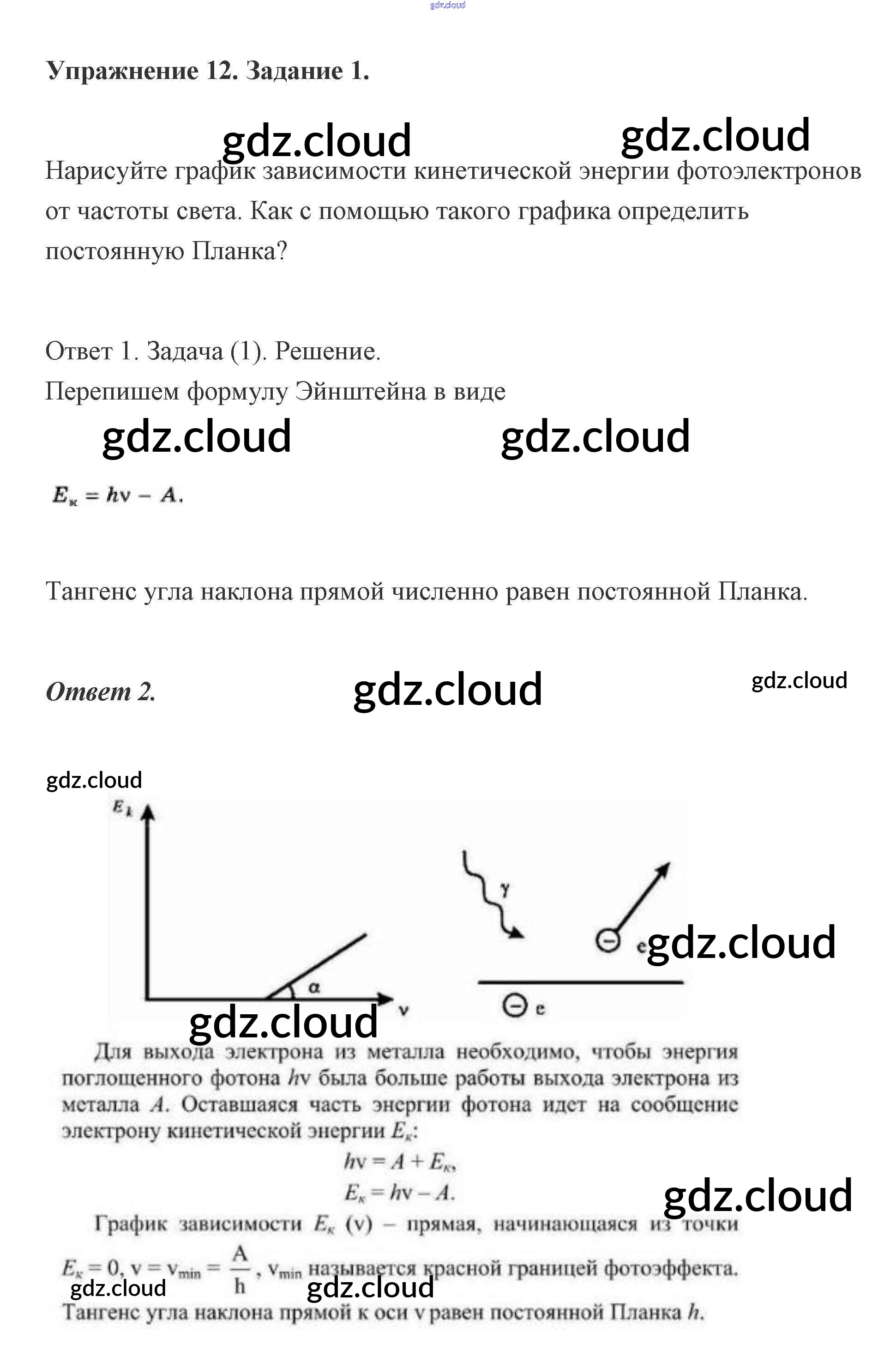 Глава 11. Упражнение 12 (Задания) Ответы к упражнениям по Физике 11 класс Учебник Мякишев Базовый и углубленный уровень Просвещение