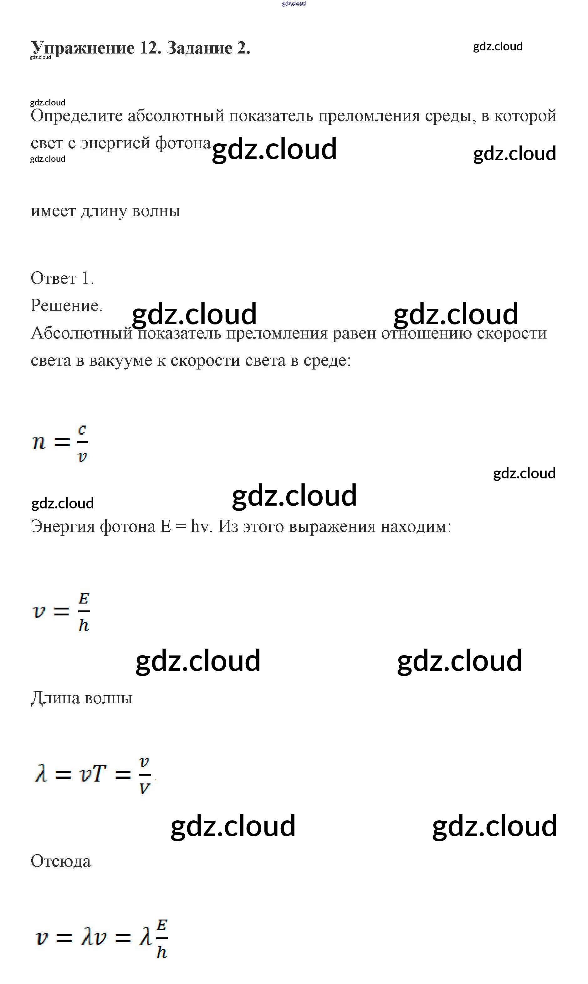 Глава 11. Упражнение 12 (Задания) Ответы к упражнениям по Физике 11 класс Учебник Мякишев Базовый и углубленный уровень Просвещение