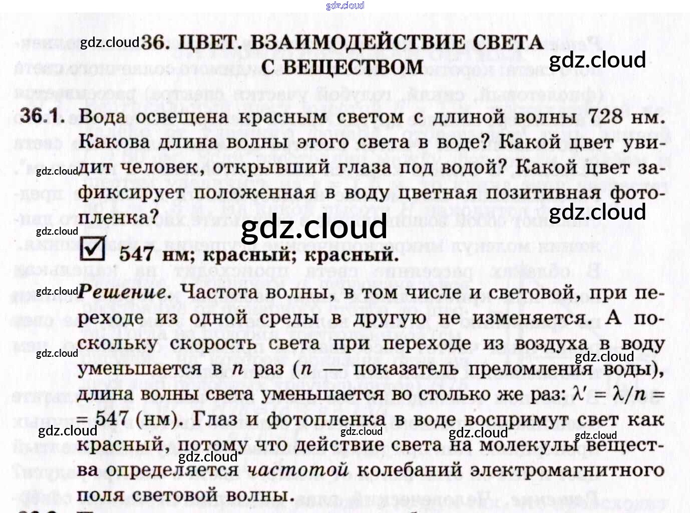 Ответы к теме 36. Цвет. Взаимодействие света с веществом по Физике 10, 11 класс Задачник Гельфгат Профильный уровень Илекса