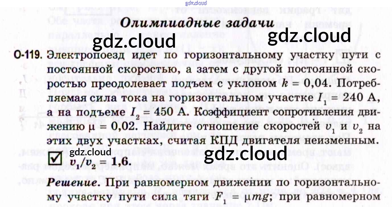 Ответ на задание О-119 Задачник Физика за 10, 11 (десятый, одиннадцатый) класс Гельфгат, Генденштейн, Кирик Профильный уровень 2021