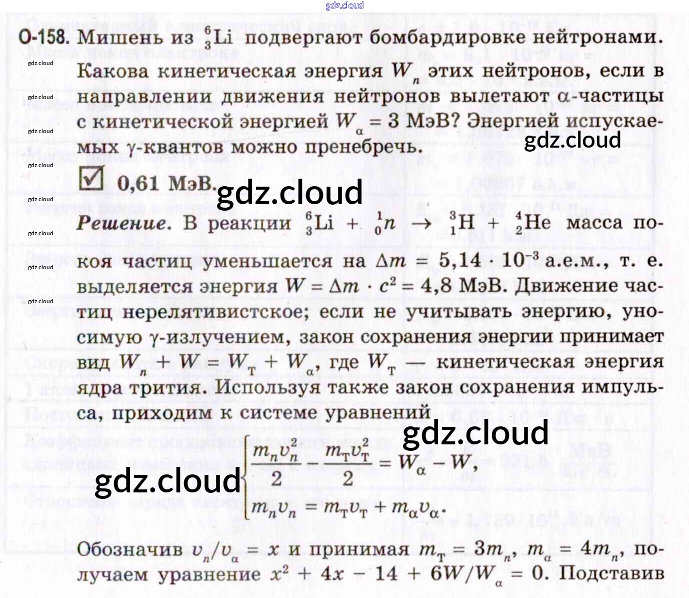 Ответ на задание О-158 Задачник Физика за 10, 11 (десятый, одиннадцатый) класс Гельфгат, Генденштейн, Кирик Профильный уровень 2021