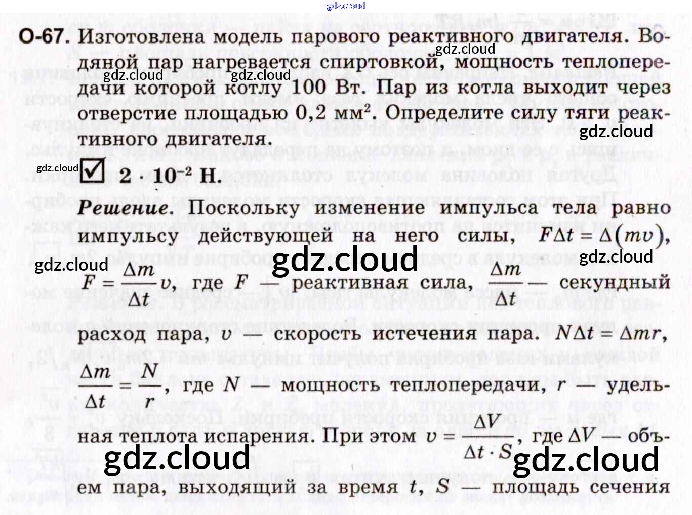 Ответ на задание О-67 Задачник Физика за 10, 11 (десятый, одиннадцатый) класс Гельфгат, Генденштейн, Кирик Профильный уровень 2021