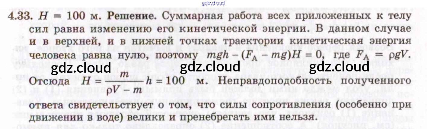 Ответ на задание 4.33 Задачник Физика за 8, 9, 10, 11 (восьмой, девятый, десятый, одиннадцатый) класс Гельфгат, Генденштейн, Кирик 2021