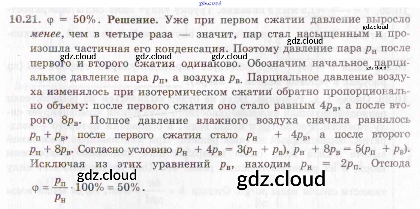 Ответ на задание 10.21 Задачник Физика за 8, 9, 10, 11 (восьмой, девятый, десятый, одиннадцатый) класс Гельфгат, Генденштейн, Кирик 2021