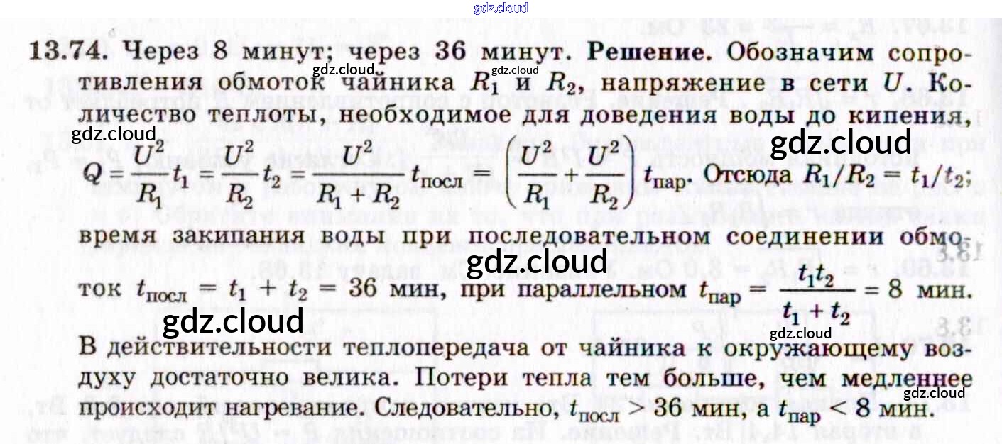 Ответ на задание 13.74 Задачник Физика за 8, 9, 10, 11 (восьмой, девятый, десятый, одиннадцатый) класс Гельфгат, Генденштейн, Кирик 2021