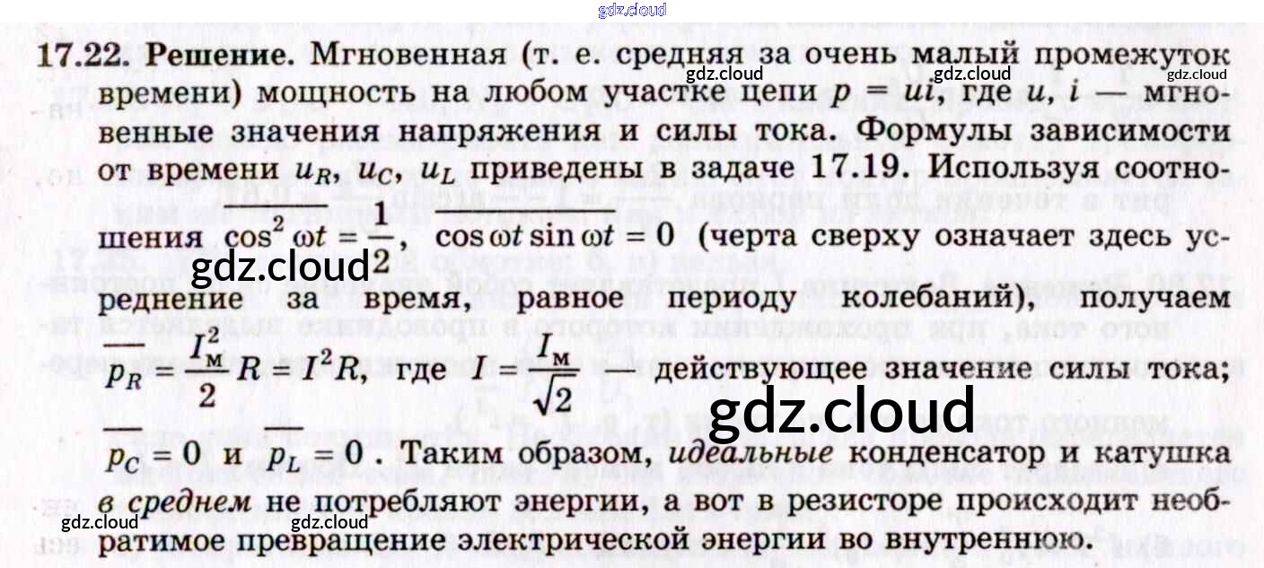 Ответ на задание 17.22 Задачник Физика за 8, 9, 10, 11 (восьмой, девятый, десятый, одиннадцатый) класс Гельфгат, Генденштейн, Кирик 2021