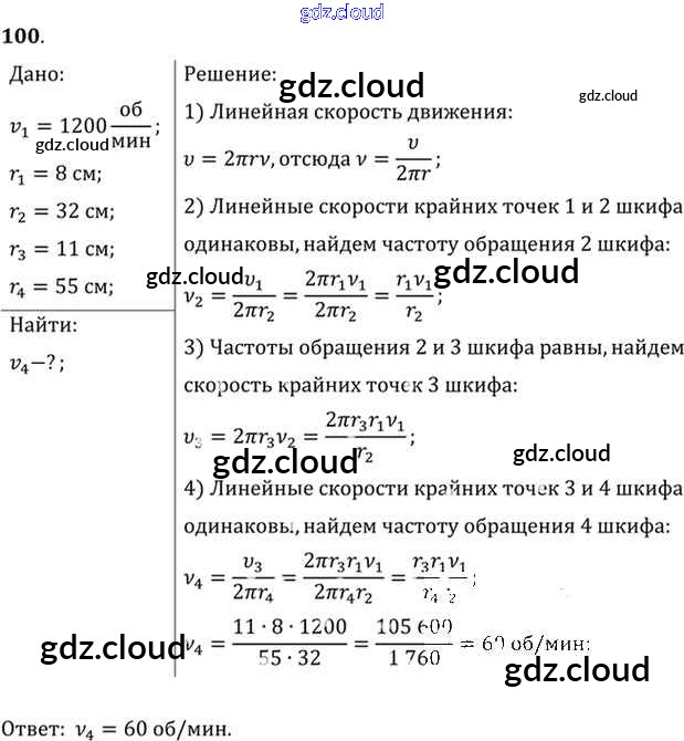 Ответ на задание 100 Задачник Физика за 10, 11 (десятый, одиннадцатый) класс Рымкевич УМК 2013