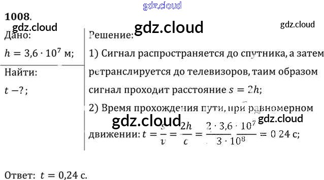 Ответ на задание 1008 Задачник Физика за 10, 11 (десятый, одиннадцатый) класс Рымкевич УМК 2013