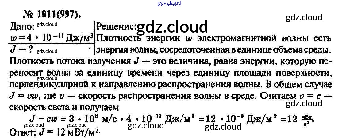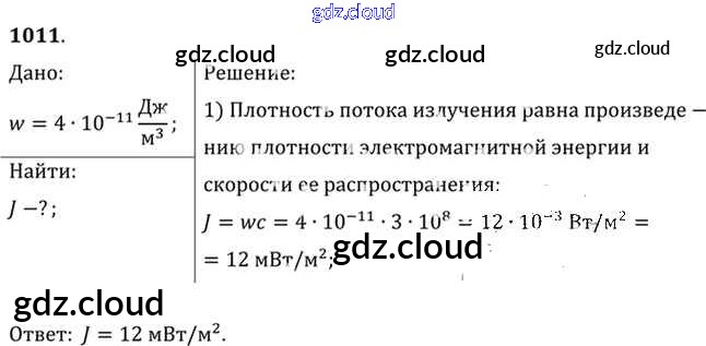 Ответ на задание 1011 Задачник Физика за 10, 11 (десятый, одиннадцатый) класс Рымкевич УМК 2013