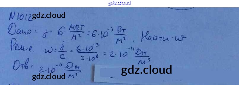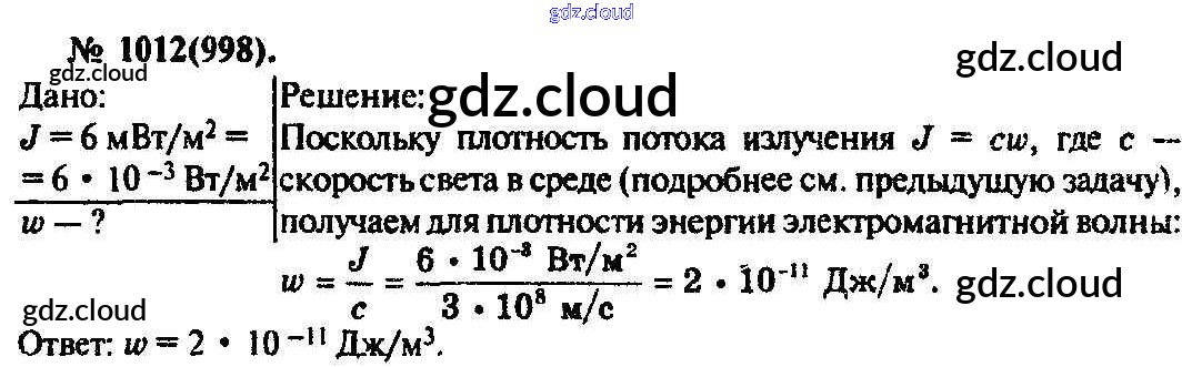 Ответ на задание 1012 Задачник Физика за 10, 11 (десятый, одиннадцатый) класс Рымкевич УМК 2013