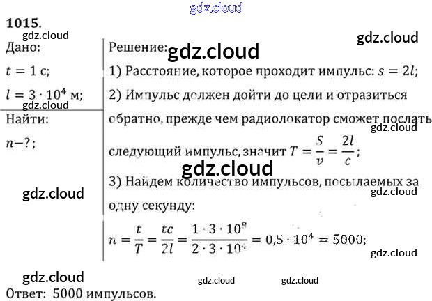 Ответ на задание 1015 Задачник Физика за 10, 11 (десятый, одиннадцатый) класс Рымкевич УМК 2013