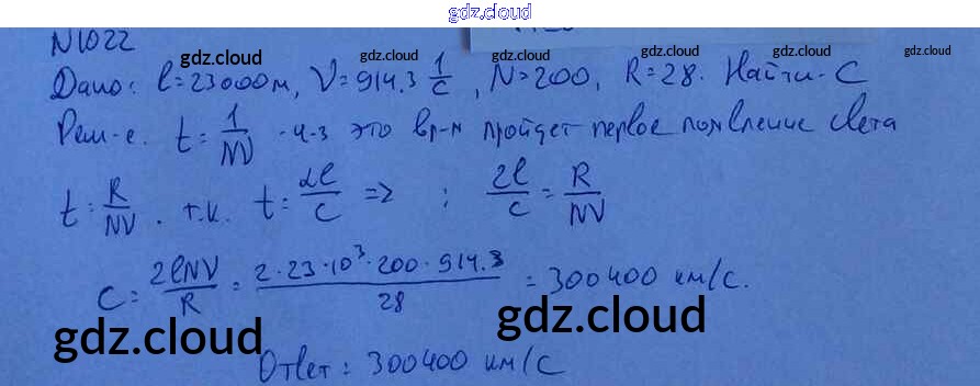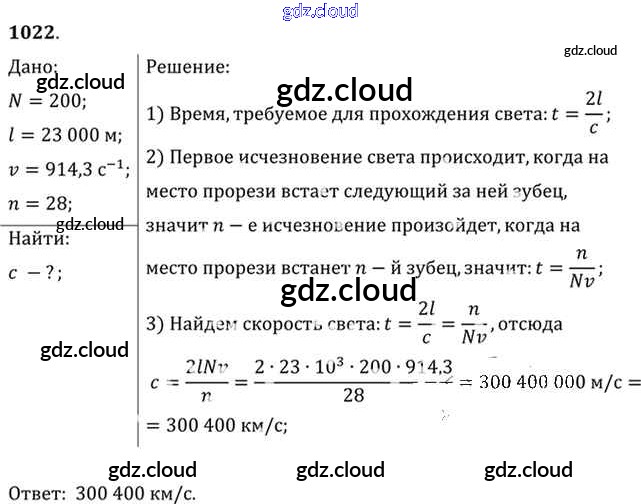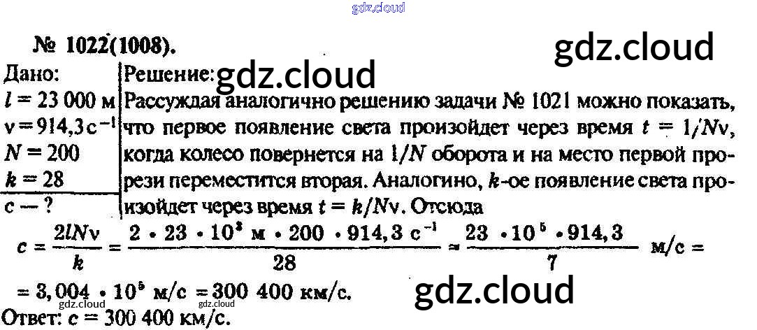 Ответ на задание 1022 Задачник Физика за 10, 11 (десятый, одиннадцатый) класс Рымкевич УМК 2013