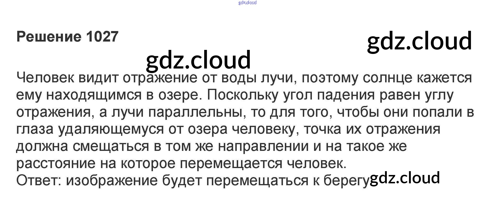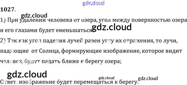 Ответ на задание 1027 Задачник Физика за 10, 11 (десятый, одиннадцатый) класс Рымкевич УМК 2013
