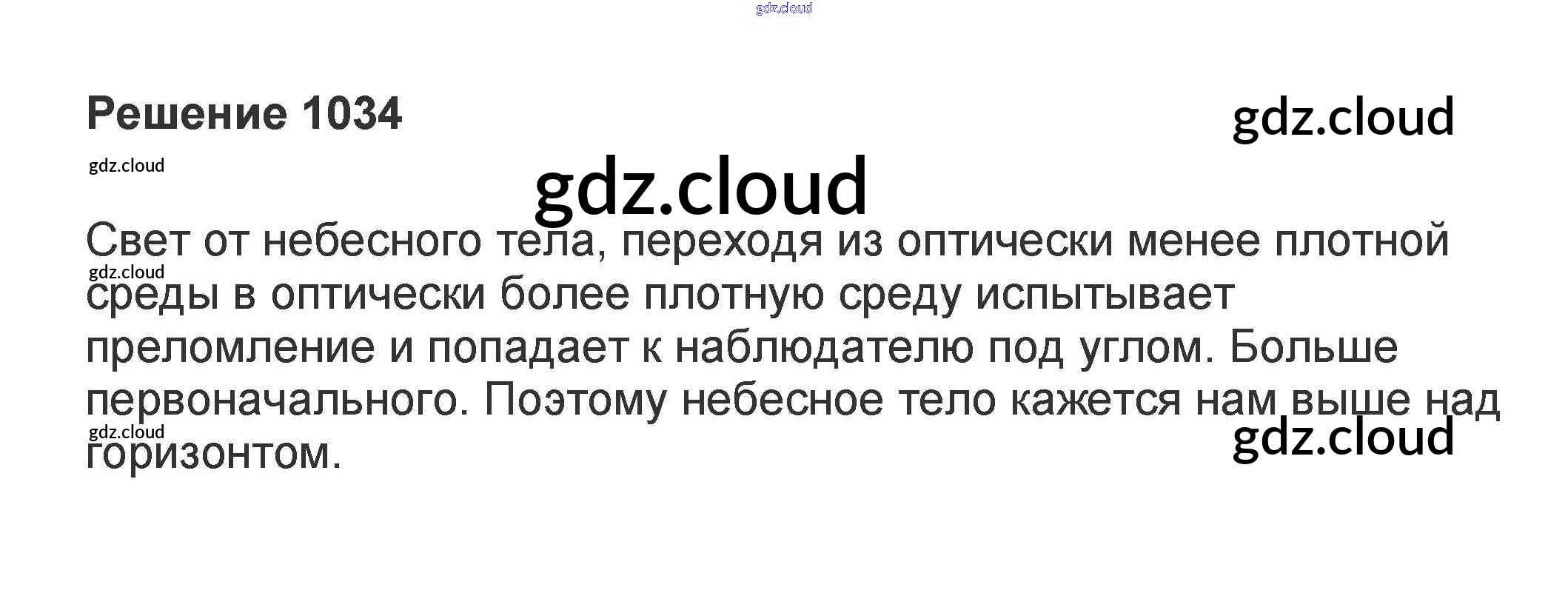 Ответ на задание 1034 Задачник Физика за 10, 11 (десятый, одиннадцатый) класс Рымкевич УМК 2013