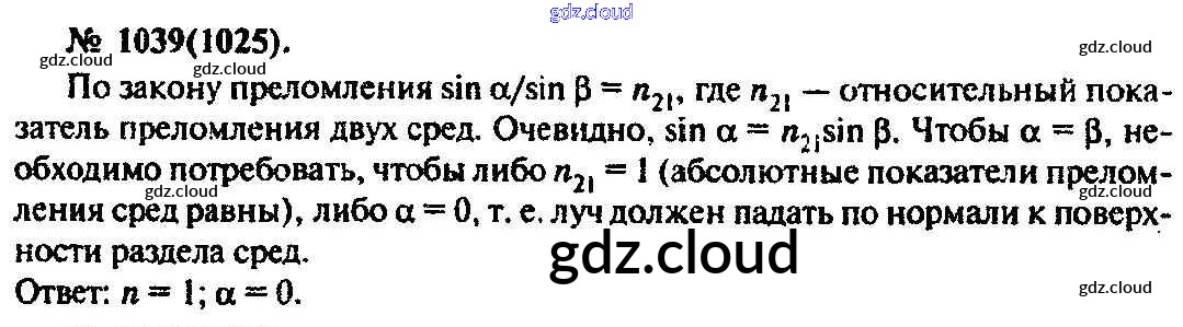 Ответ на задание 1039 Задачник Физика за 10, 11 (десятый, одиннадцатый) класс Рымкевич УМК 2013