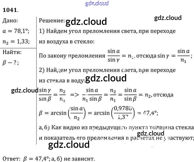 Ответ на задание 1041 Задачник Физика за 10, 11 (десятый, одиннадцатый) класс Рымкевич УМК 2013