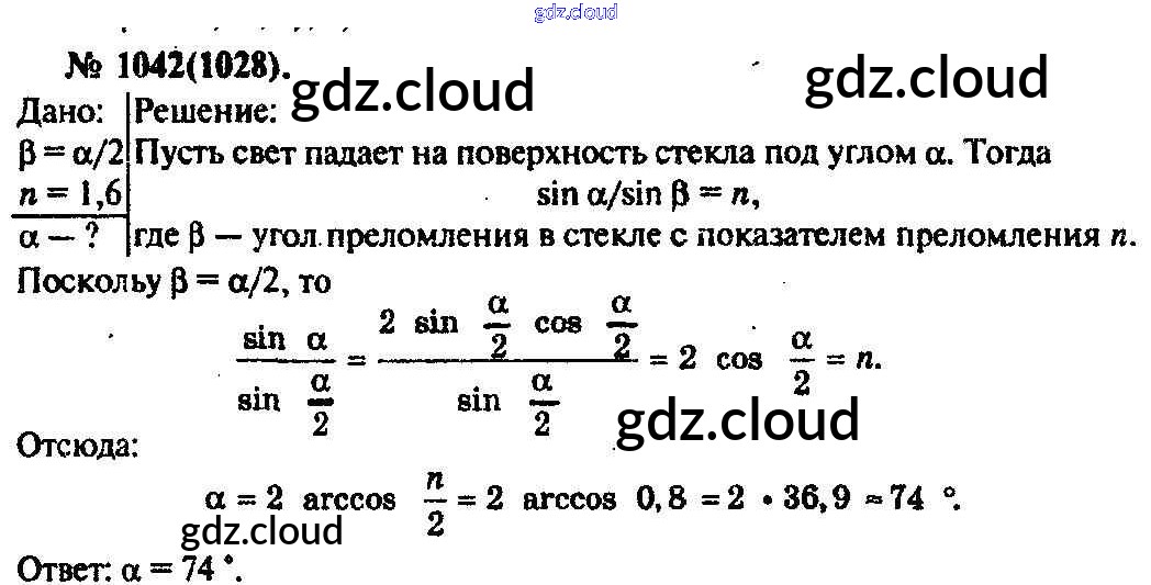 Ответ на задание 1042 Задачник Физика за 10, 11 (десятый, одиннадцатый) класс Рымкевич УМК 2013