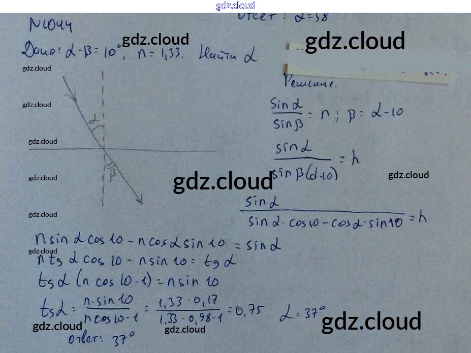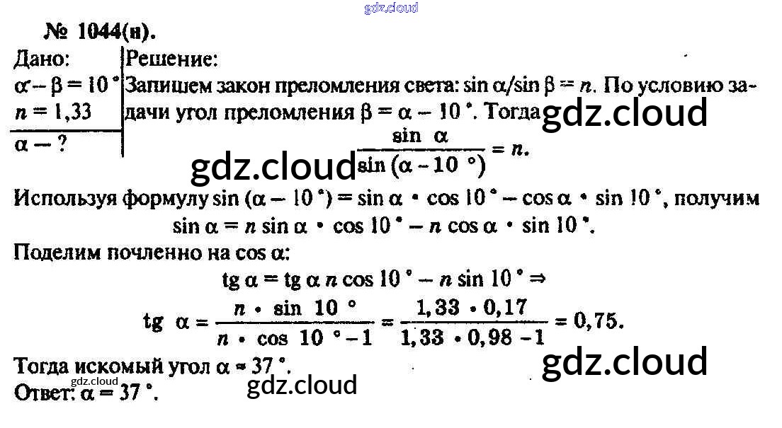 Ответ на задание 1044 Задачник Физика за 10, 11 (десятый, одиннадцатый) класс Рымкевич УМК 2013
