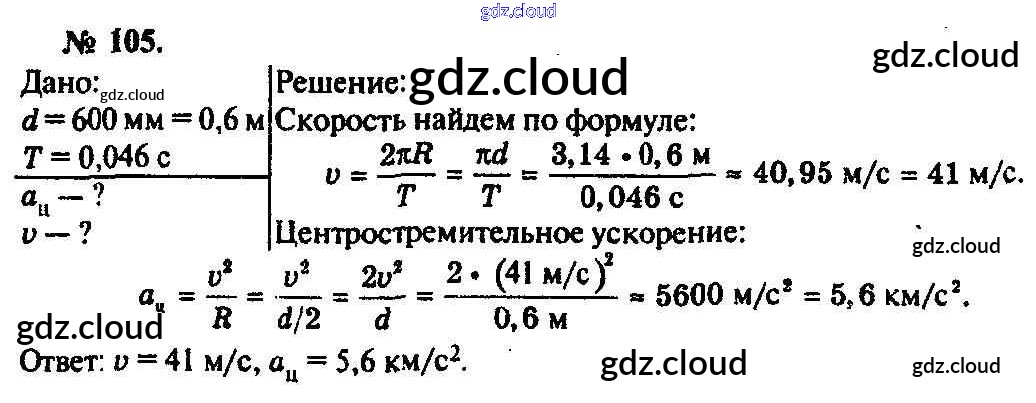 Ответ на задание 105 Задачник Физика за 10, 11 (десятый, одиннадцатый) класс Рымкевич УМК 2013