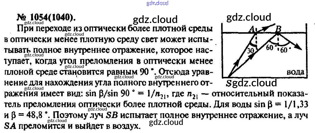 Ответ на задание 1054 Задачник Физика за 10, 11 (десятый, одиннадцатый) класс Рымкевич УМК 2013