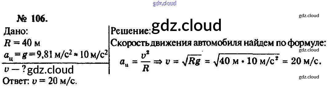 Ответ на задание 106 Задачник Физика за 10, 11 (десятый, одиннадцатый) класс Рымкевич УМК 2013