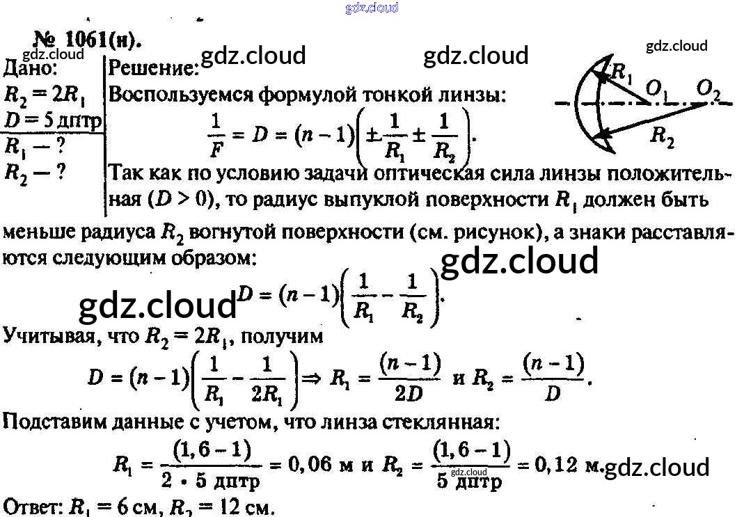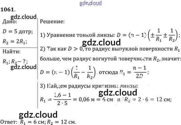 Ответ на задание 1061 Задачник Физика за 10, 11 (десятый, одиннадцатый) класс Рымкевич УМК 2013