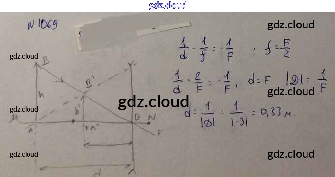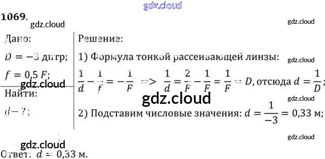Ответ на задание 1069 Задачник Физика за 10, 11 (десятый, одиннадцатый) класс Рымкевич УМК 2013