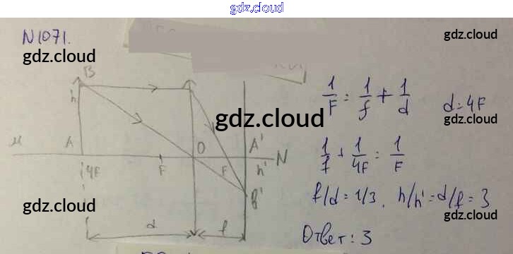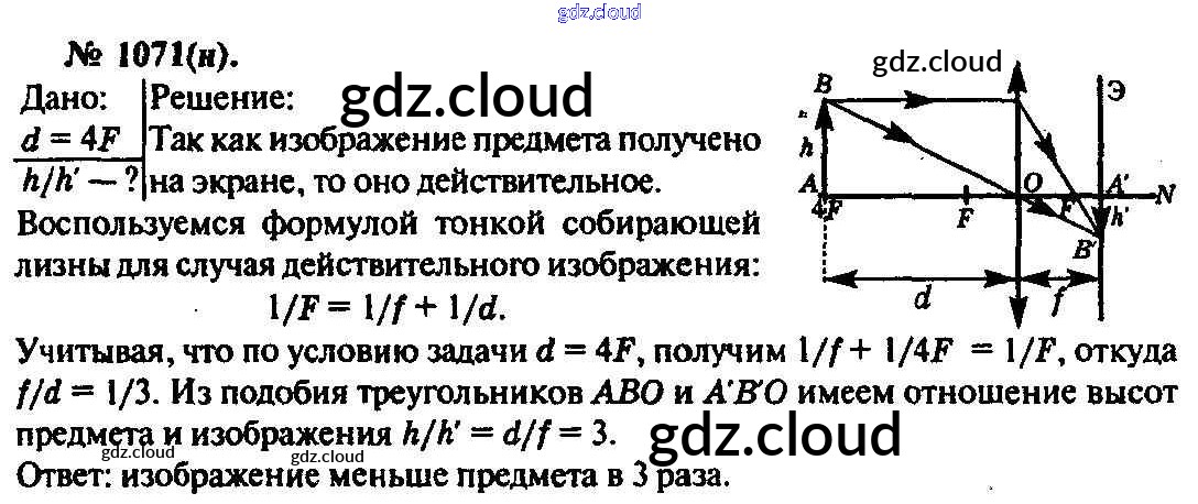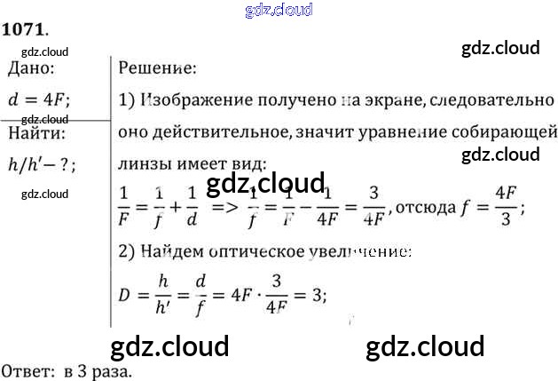 Ответ на задание 1071 Задачник Физика за 10, 11 (десятый, одиннадцатый) класс Рымкевич УМК 2013