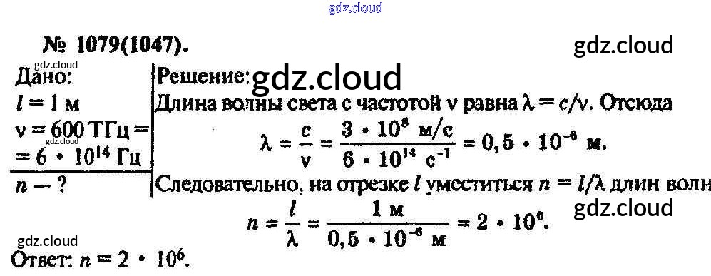 Ответ на задание 1079 Задачник Физика за 10, 11 (десятый, одиннадцатый) класс Рымкевич УМК 2013