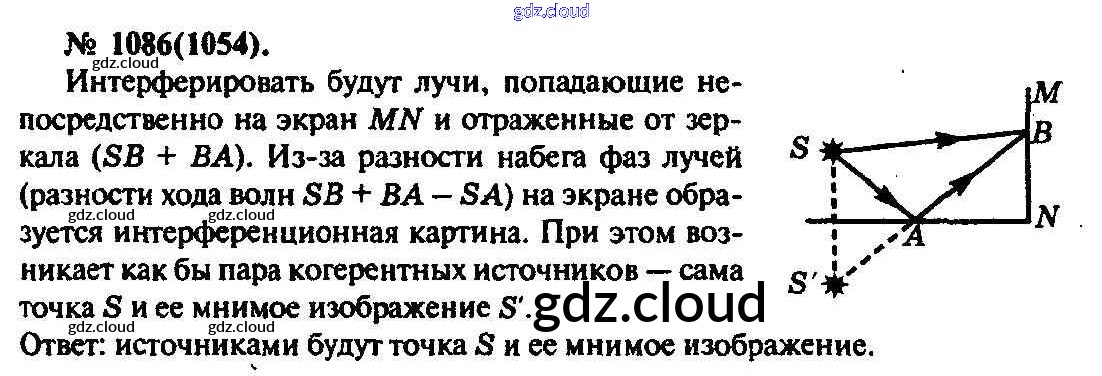 Ответ на задание 1086 Задачник Физика за 10, 11 (десятый, одиннадцатый) класс Рымкевич УМК 2013