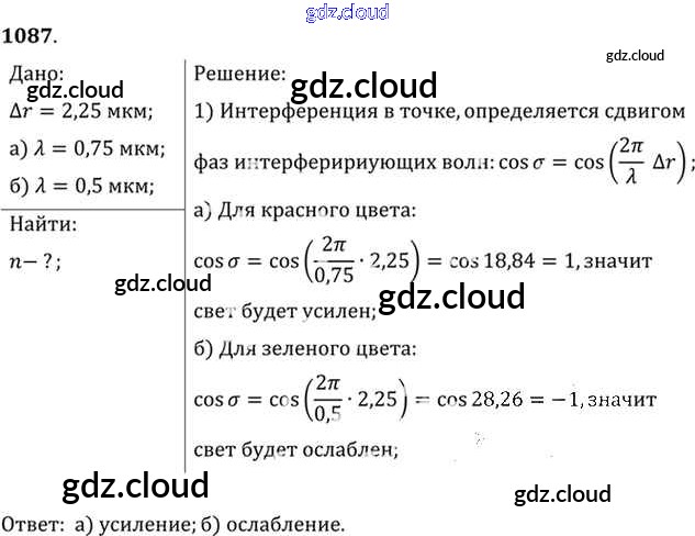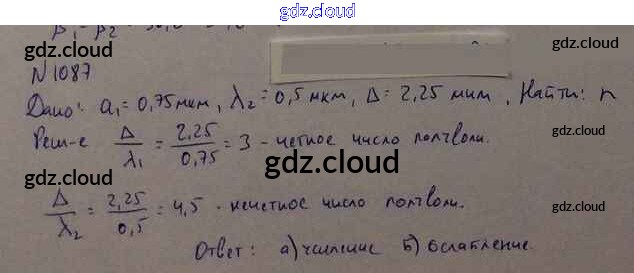 Ответ на задание 1087 Задачник Физика за 10, 11 (десятый, одиннадцатый) класс Рымкевич УМК 2013
