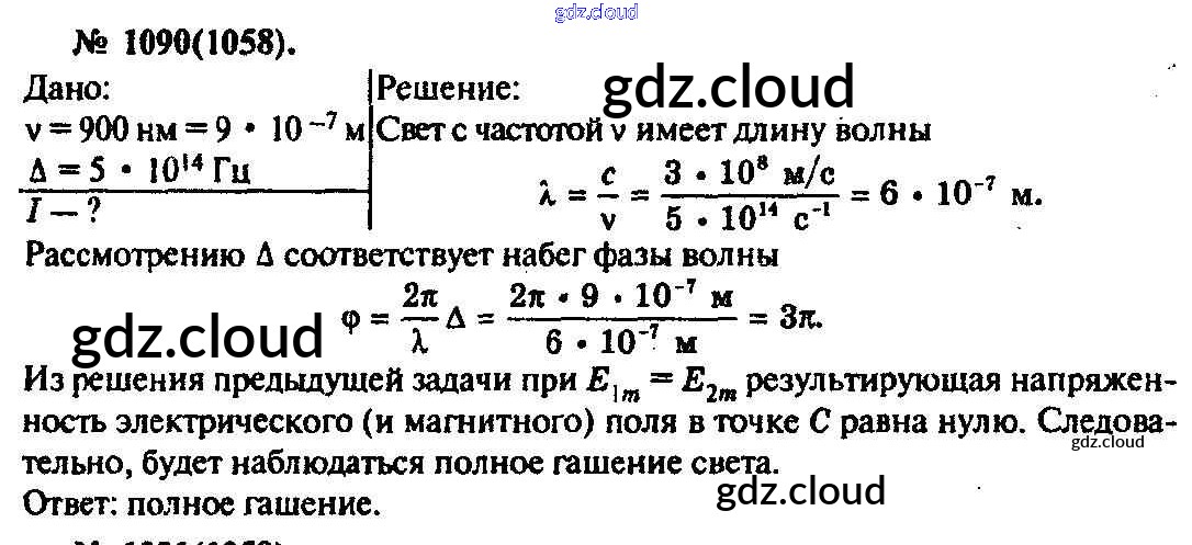 Ответ на задание 1090 Задачник Физика за 10, 11 (десятый, одиннадцатый) класс Рымкевич УМК 2013