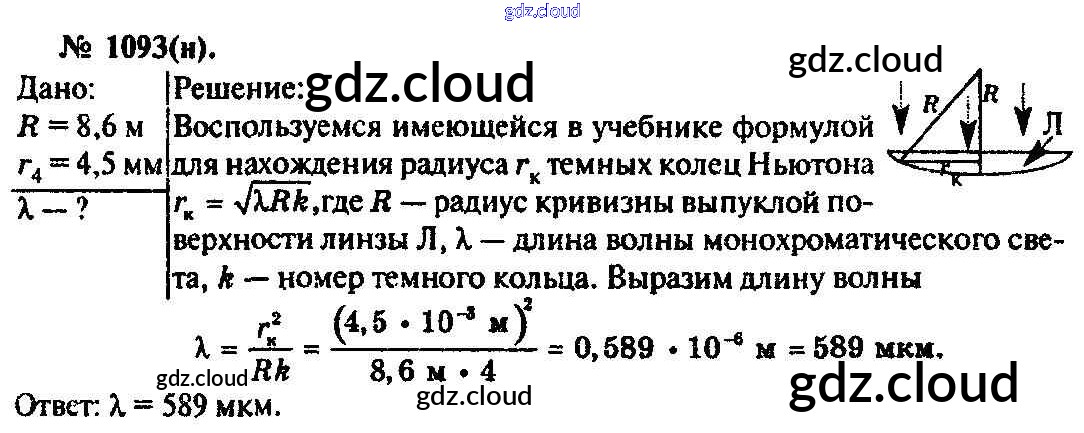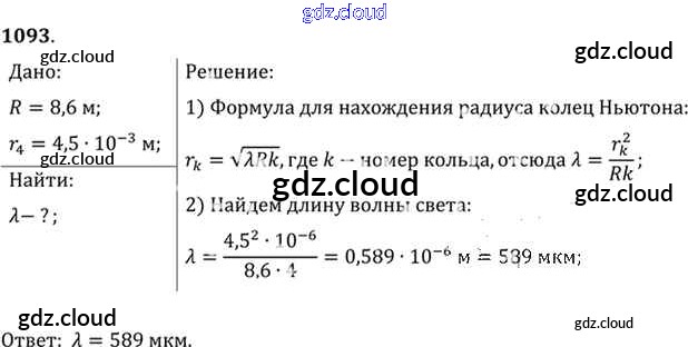 Ответ на задание 1093 Задачник Физика за 10, 11 (десятый, одиннадцатый) класс Рымкевич УМК 2013