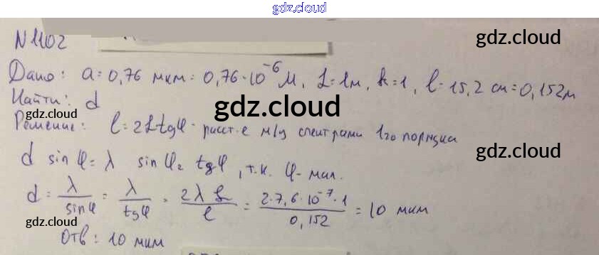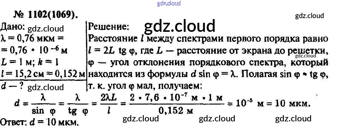 Ответ на задание 1102 Задачник Физика за 10, 11 (десятый, одиннадцатый) класс Рымкевич УМК 2013