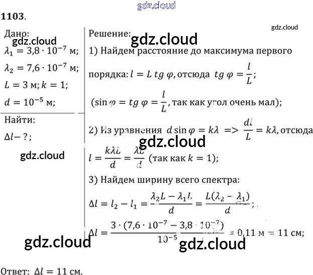 Ответ на задание 1103 Задачник Физика за 10, 11 (десятый, одиннадцатый) класс Рымкевич УМК 2013