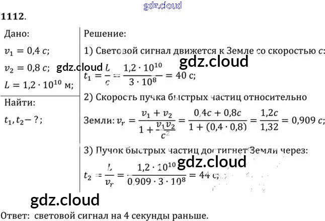 Ответ на задание 1112 Задачник Физика за 10, 11 (десятый, одиннадцатый) класс Рымкевич УМК 2013