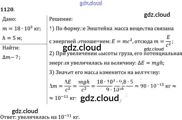 Ответ на задание 1120 Задачник Физика за 10, 11 (десятый, одиннадцатый) класс Рымкевич УМК 2013