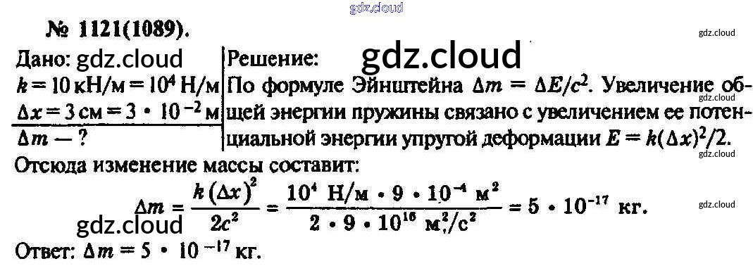 Ответ на задание 1121 Задачник Физика за 10, 11 (десятый, одиннадцатый) класс Рымкевич УМК 2013