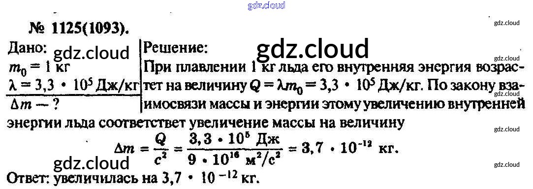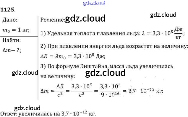 Ответ на задание 1125 Задачник Физика за 10, 11 (десятый, одиннадцатый) класс Рымкевич УМК 2013