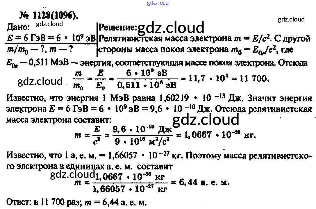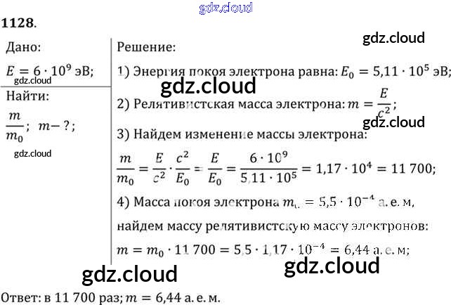 Ответ на задание 1128 Задачник Физика за 10, 11 (десятый, одиннадцатый) класс Рымкевич УМК 2013