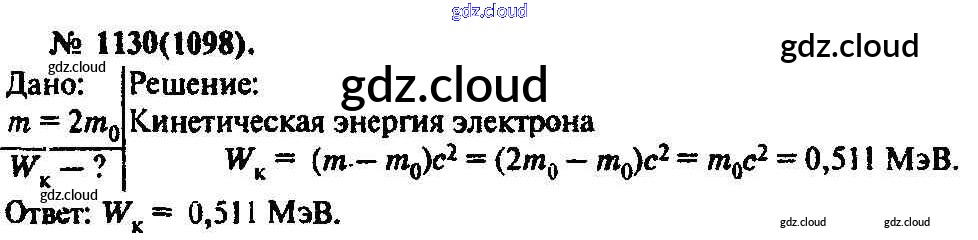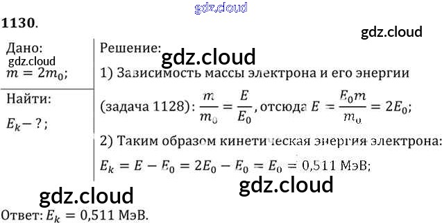 Ответ на задание 1130 Задачник Физика за 10, 11 (десятый, одиннадцатый) класс Рымкевич УМК 2013