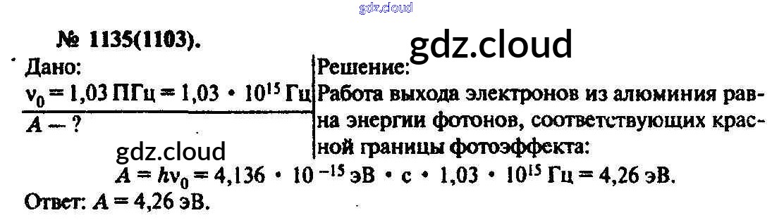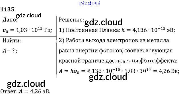Ответ на задание 1135 Задачник Физика за 10, 11 (десятый, одиннадцатый) класс Рымкевич УМК 2013