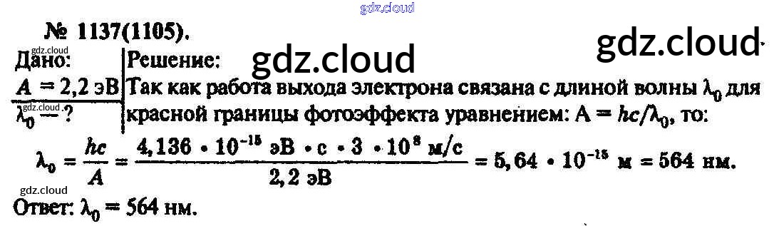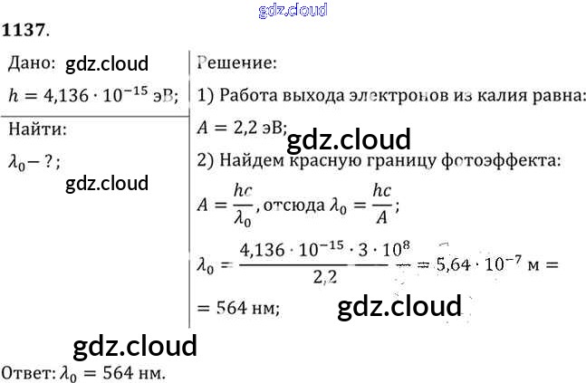 Ответ на задание 1137 Задачник Физика за 10, 11 (десятый, одиннадцатый) класс Рымкевич УМК 2013