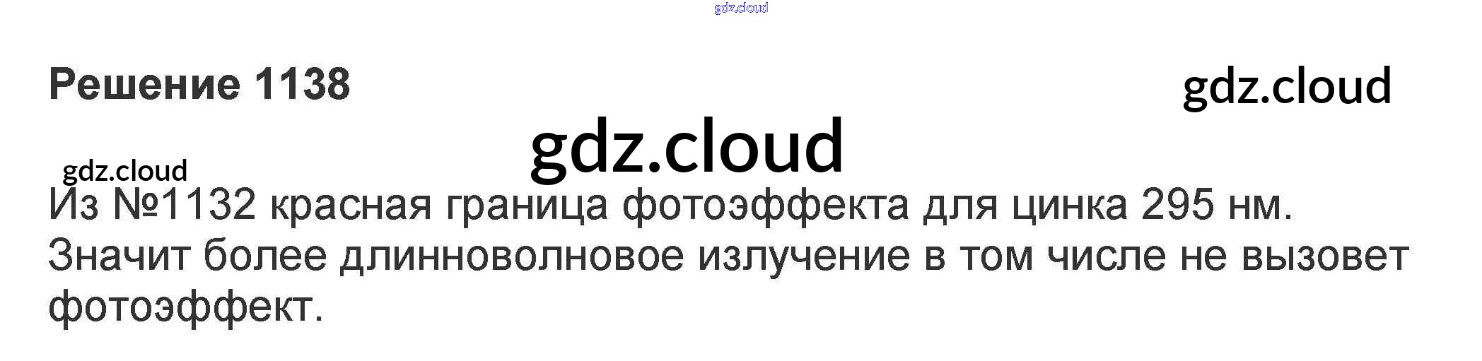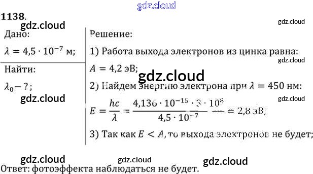 Ответ на задание 1138 Задачник Физика за 10, 11 (десятый, одиннадцатый) класс Рымкевич УМК 2013