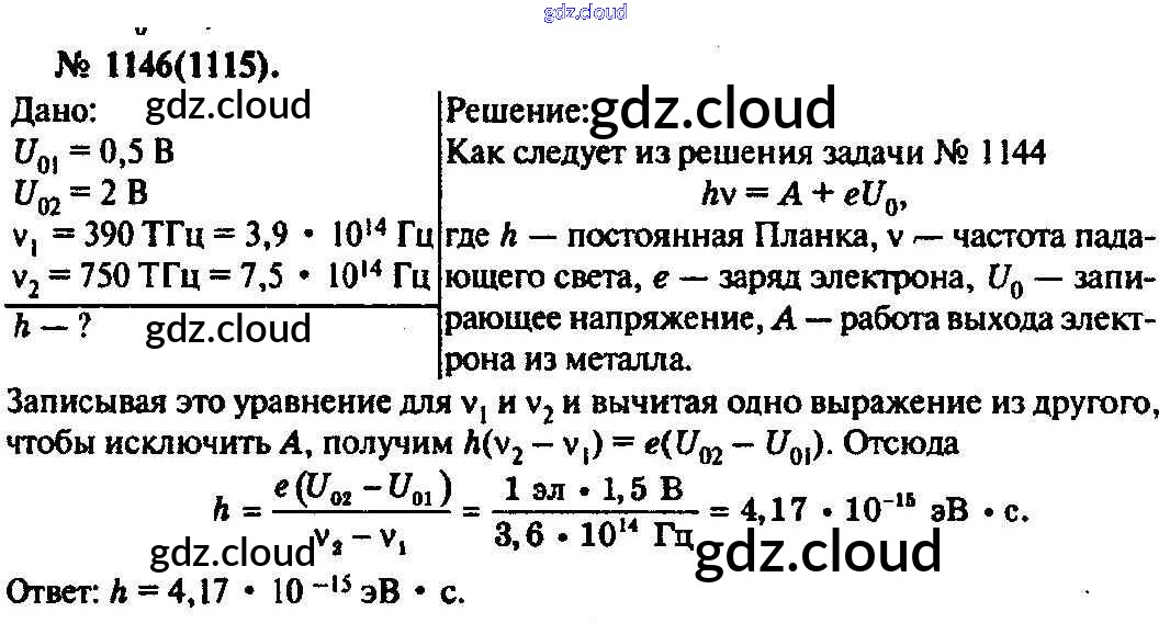 Ответ на задание 1146 Задачник Физика за 10, 11 (десятый, одиннадцатый) класс Рымкевич УМК 2013