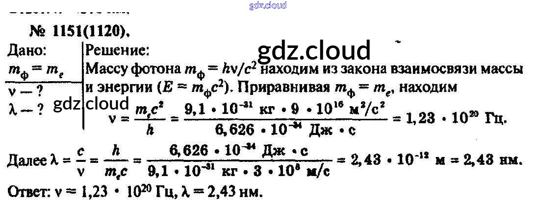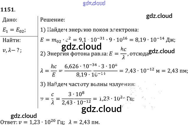 Ответ на задание 1151 Задачник Физика за 10, 11 (десятый, одиннадцатый) класс Рымкевич УМК 2013