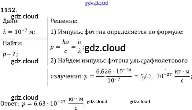 Ответ на задание 1152 Задачник Физика за 10, 11 (десятый, одиннадцатый) класс Рымкевич УМК 2013