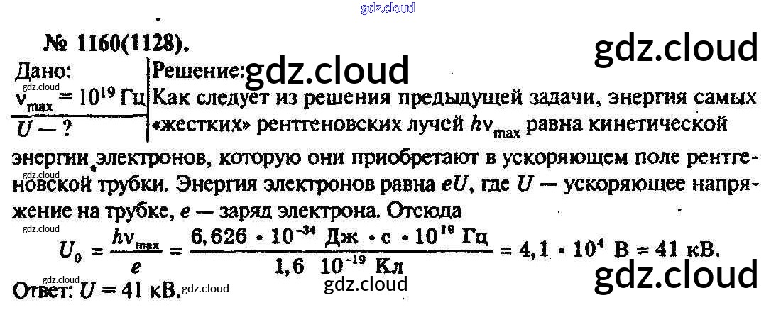Ответ на задание 1160 Задачник Физика за 10, 11 (десятый, одиннадцатый) класс Рымкевич УМК 2013