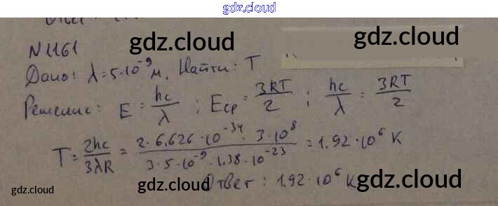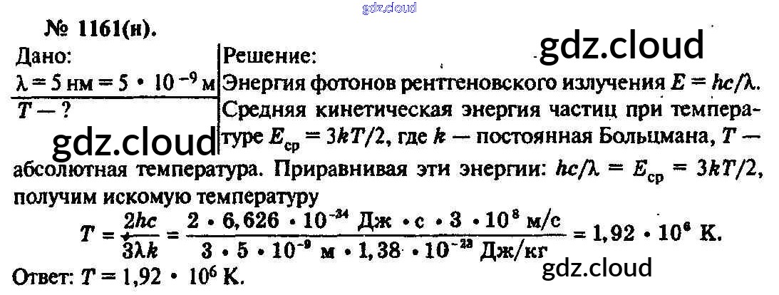 Ответ на задание 1161 Задачник Физика за 10, 11 (десятый, одиннадцатый) класс Рымкевич УМК 2013